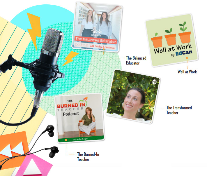 Hosted by two Canadian teachers, The Balanced Educator empowers teachers to feel more calm, balanced, and joyful. There’s also Well at Work, a conversation with Canadian K–12 educators about workplace mental health and well-being. When it comes to teacher burnout, The Burned-In Teacher Podcast is a great resource. Looking for something more uplifting? Check out The Transformed Teacher, a podcast by educator Meredith Newlin that is designed to help transform the overwhelmed to overjoyed.